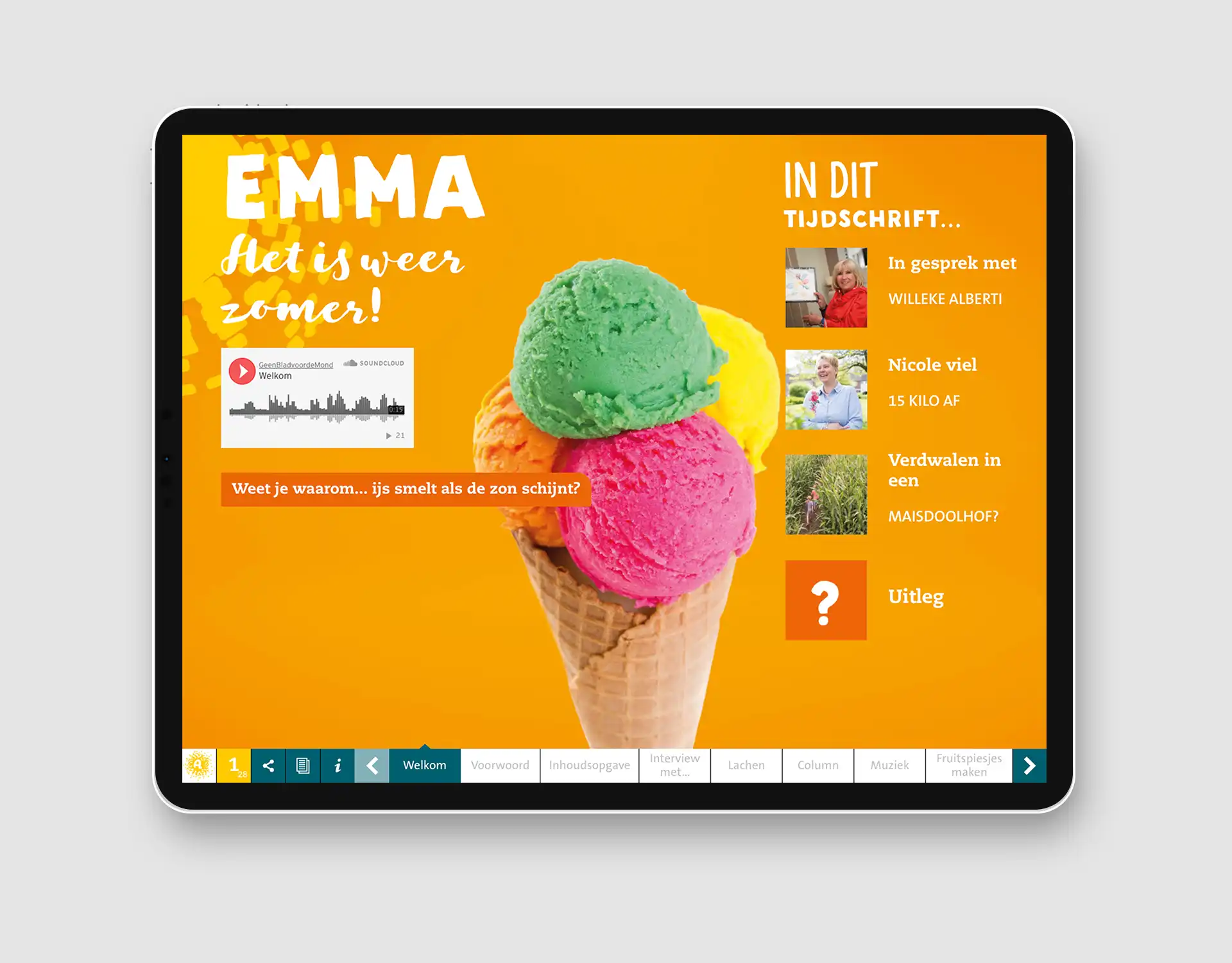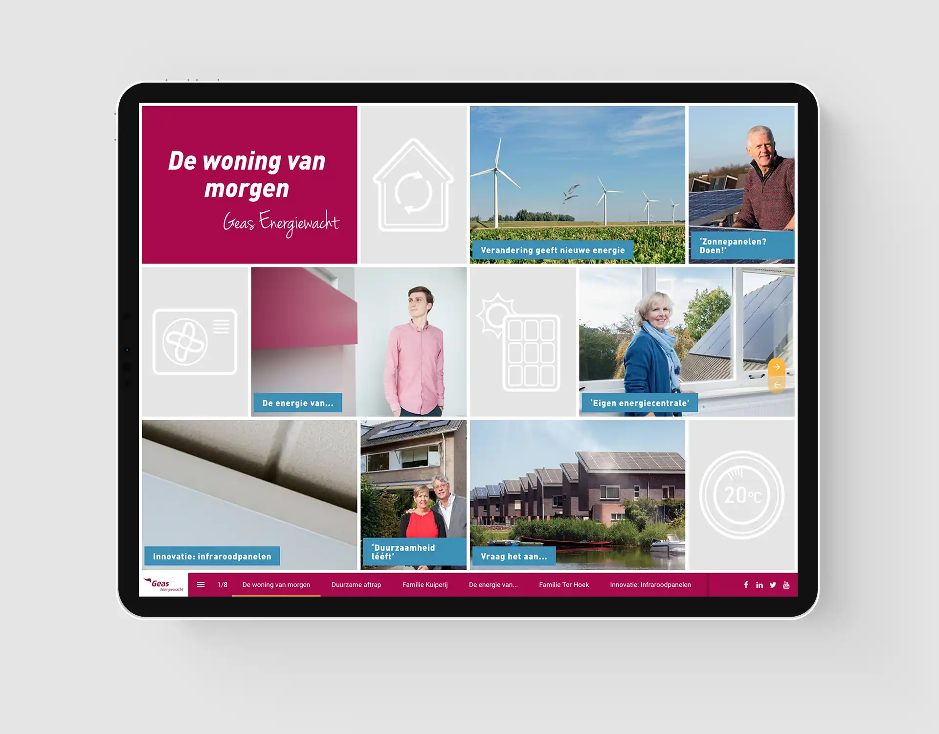 Interactieve content die van je scherm afspat. Met niet alleen foto’s, maar ook video’s, animaties en infographics. En dat alles uiteraard met een hoge ‘deelbaarheidsfactor’ voor social media, ook op paginaniveau. Dat is de meerwaarde van een digitaal personeelsblad.