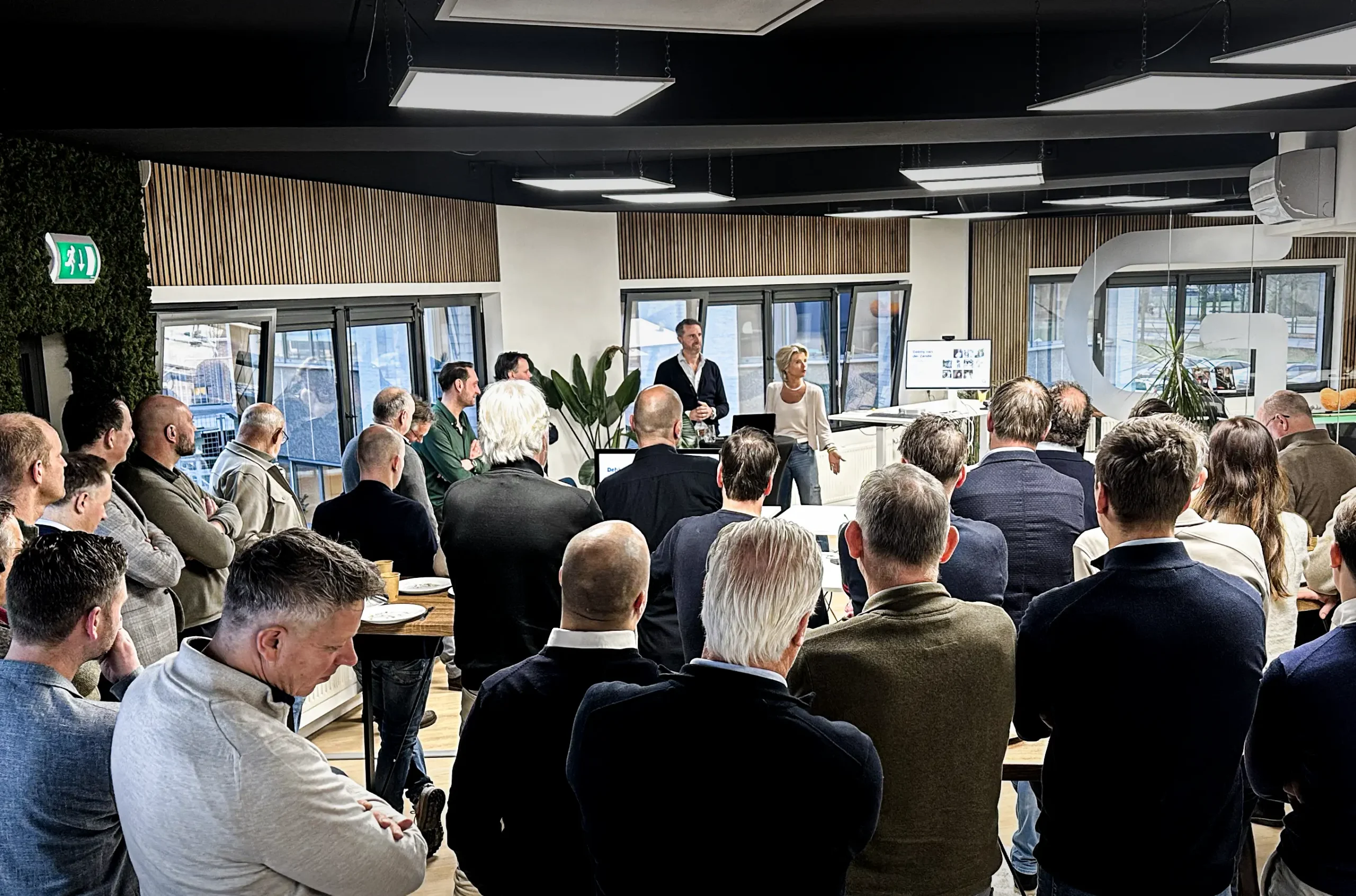 Die vroege start bleek geen enkel probleem. De ruimte zat snel vol en ook buiten waren de 50+ auto’s een duidelijk teken dat veel ondernemers zin hadden om het nieuwe jaar samen af te trappen. Quick Business brengt ondernemers op deze manier bij elkaar: informeel, laagdrempelig en met ruimte voor goede gesprekken. Deze keer met Geen Blad voor de Mond als gastheer.