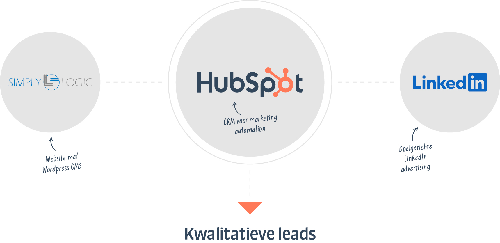 Om alle binnenkomende data overzichtelijk te houden hebben we een strategie ontwikkeld om het gebruik van HubSpot te optimaliseren. Een ideale oplossing voor inbound marketingbeheer. Met het CRM-platform kan Simplylogic geautomatiseerd potentiële klanten generen, beheren en onderhouden en aan leadgeneratie werken. De software zorgt ervoor dat relevante bezoekers worden aangetrokken. De data die dit oplevert gebruiken we voor gerichte content. Zo kunnen we bijvoorbeeld specifieke doelgroepen binnen de branches segmenteren.